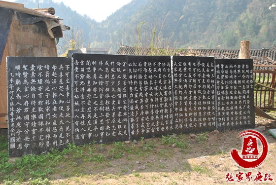 石堰坪人将《朱子家训》治家格言铭刻于石碑之上,劝规乡民勤俭持家、安分守己,用中国传统文化中的家庭道德思想,更好地教育子女、治理家庭。