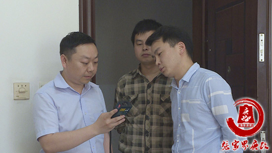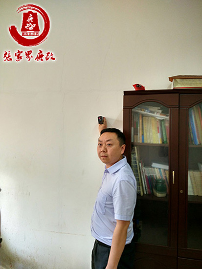 督查组工作人员正在测量某单位办公室的面积