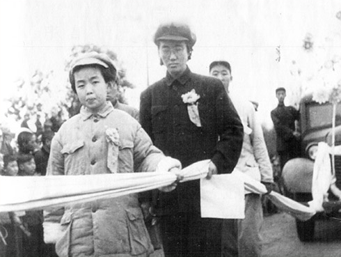 1950年10月20日,左权夫人刘志兰携女儿左太北在移灵时执绋
