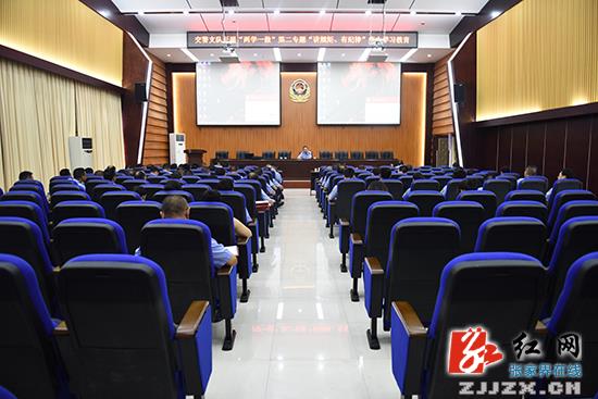 7月14日,张家界市公安局交警支队开展“两学一做”第二专题集中学习教育,通过集中上党课、观看教育片等方式,引导全体党员坚定理想信念、锤炼坚强党性、筑牢忠诚警魂。支队长全际平、政委李建忠等党委班子成员,机关科室、直属一、二大队全体党员参加学习。