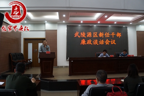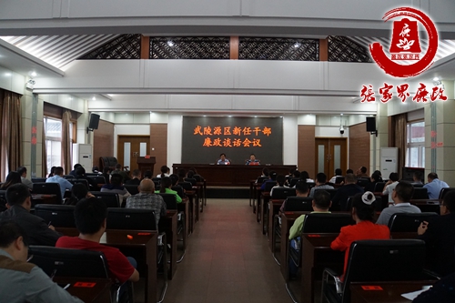 9月29日,武陵源区召开新任干部廉政谈话会,区委常委、区纪委书记王磊出席会议并讲话。区纪委副书记、区监察局局长杨孚文主持会议。