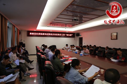 会上,学习了《张家界市党纪政纪处分决定执行办法》、《关于公务员被采取强制措施和受行政刑事处罚工资待遇处理有关问题的通知》、《关于公务员受处分工资待遇处理有关问题的通知》等上级文件精神;通报了2016年纪律处分决定执行情况自查工作存在的问题;安排部署纪律处分执行“回头看”工作,要求各单位和责任人就2016年至2017年上半年的纪律处分决定执行“回头看”工作情况,于10月15日之前报送县纪委。