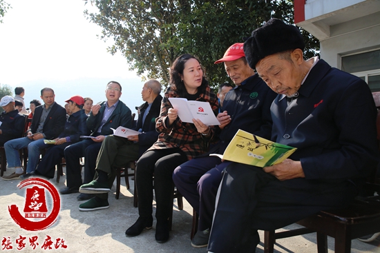 武陵源区纪委监察局机关干部和老人们一起学习十九大报告