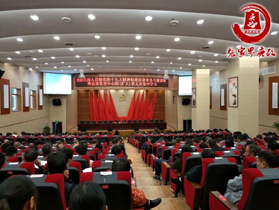 11月8日下午,在行政中心三楼中心会议室召开桑植县深入贯彻党的十九大精神精准扶贫业务专题讲座暨县委常委中心组(扩大)第五次集中学习会议,在家县处级领导,各乡镇党政主要负责人、扶贫办主任、扶贫办电脑操作员,124个贫困村支部书记、第一书记,县直承担脱贫攻坚任务的单位主要负责人共计528人参加。会议由县长赵云海主持,省扶贫办党组成员、副主任贺丽君进行专题辅导。