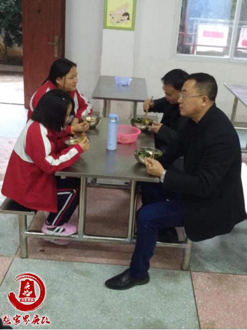 12月25日至29日,由7名市教育局党组领导班子成员分别带队的各调研组轻车简从,采用“四不两直”(不发通知、不打招呼、不听汇报、不用陪同和接待,直奔基层、直插现场)方式,深入市特殊教育学校、慈利县三官寺中学、慈利县甘堰乡中学、永定区解放小学、永定区王家坪镇湖田垭九年制学校、武陵源区二中、桑植县空壳树乡中学等14所中小学校实地查看校园周边情况、校门口执勤与护导情况、巡视校园环境,走进教学楼、食堂、学生宿舍,详细了解学校的安全保卫、设备设施、师生的饮食卫生情况以及教师精神风貌和师德师风现状。同时,了解学校当前存在突出问题和困难,征询对全市教育综合改革、学校建设管理、违规征订教辅材料专项整治、教师队伍建设等方面的意见和建议。到了午餐或晚餐时间,调研组全体成员按照“同样缴费、同时就餐、同标准就餐”的原则到学生食堂进行陪餐,亲身感受学生饭菜的口味和卫生情况,重点督查学校在学生食堂设施、伙食费收支及教职工伙食费开支、伙食标准和质量等方面存在的突出问题,对现场调研中发现的问题要求学校食堂限期整改到位,切实采取措施,坚决防止校园食品安全事故发生,确保全市广大师生“舌尖上”的安全。
