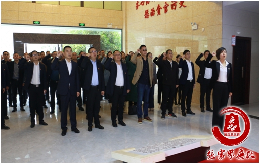 当天,全体人员面对鲜红的党旗,集体重温了入党誓词。(慈利县纪委监委 代炯琼)
