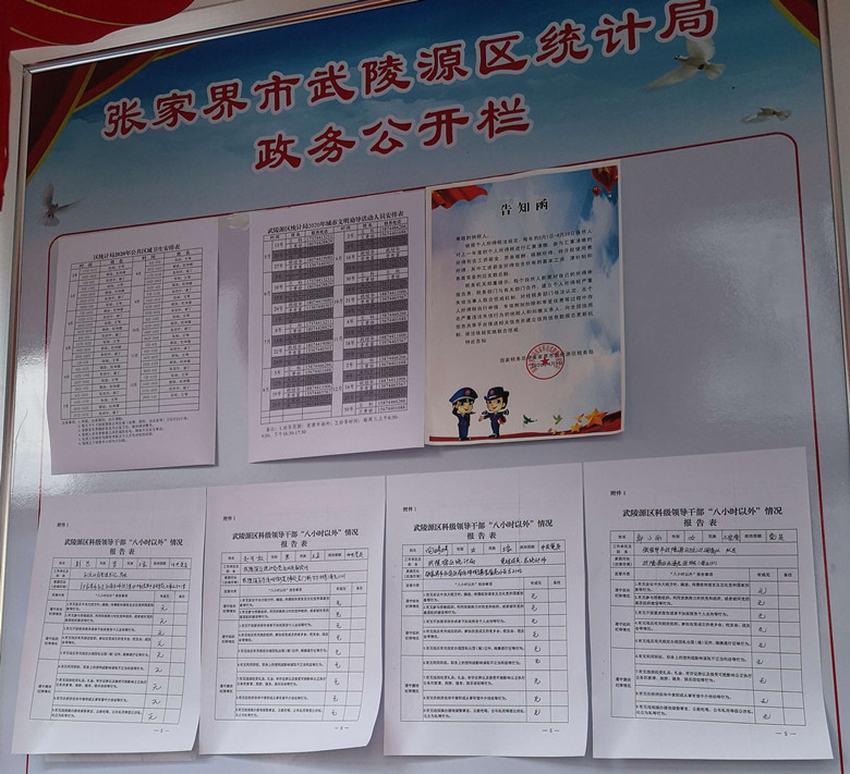 据悉,为进一步强化领导干部“八小时以外”监督管理,局领导班子填写了《武陵源区科级领导干部“八小时以外”情况报告表》,并在单位进行为期一周的公示,广泛征求局干部职工的意见和建议,并按要求将科级领导干部监督卡发放给班子成员居住小区物业公司、市场监管、公安、银行等单位,广泛接受社会监督。